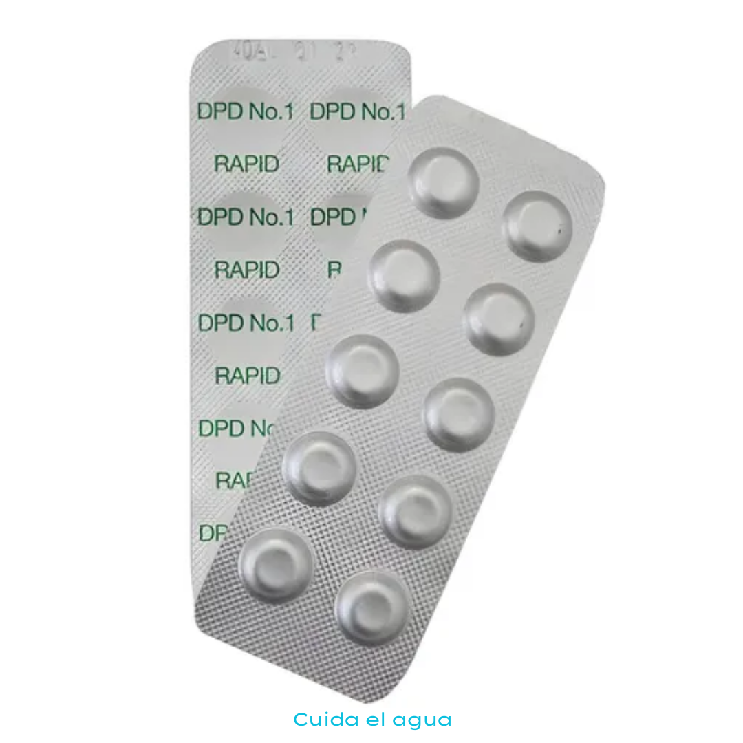 Pastillas DPD1 para medir cloro libre en piscinas y spas. Permiten conocer de forma rápida y confiable el nivel de cloro activo en el agua, ayudando a mantenerla limpia, segura y sin irritaciones. Ideales para mantenimiento doméstico y profesional. Compatibles con comparadores visuales y equipos de análisis.